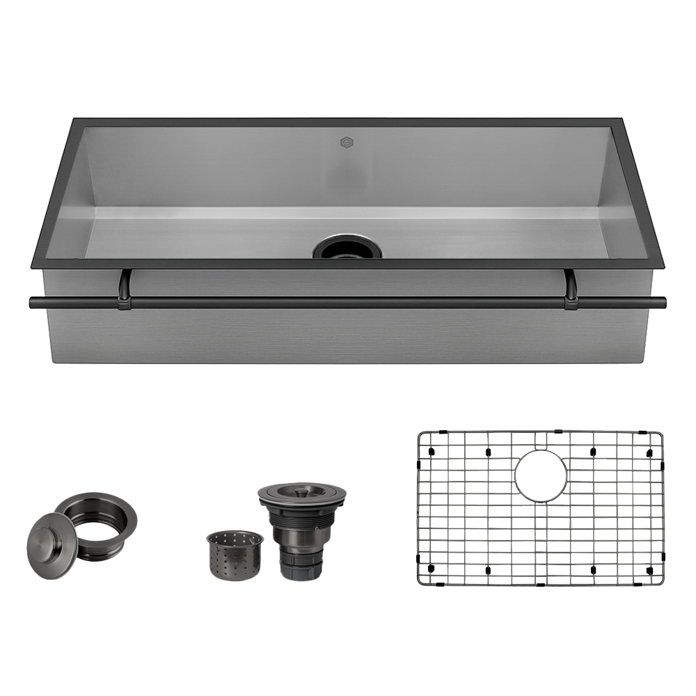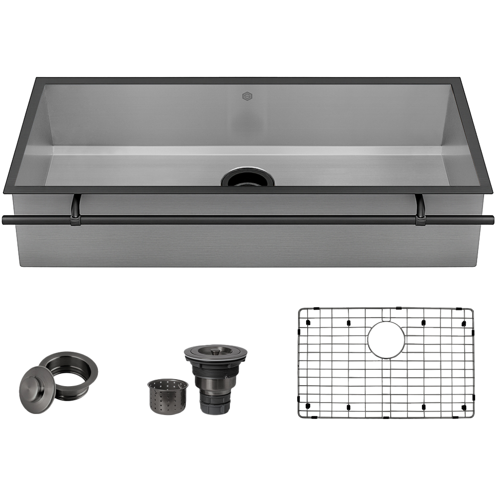 I was looking for a specific size of a drop in mount, workstation style sink that the glass rinser, soap dispenser, and on/off switch could easily be added as accessories.