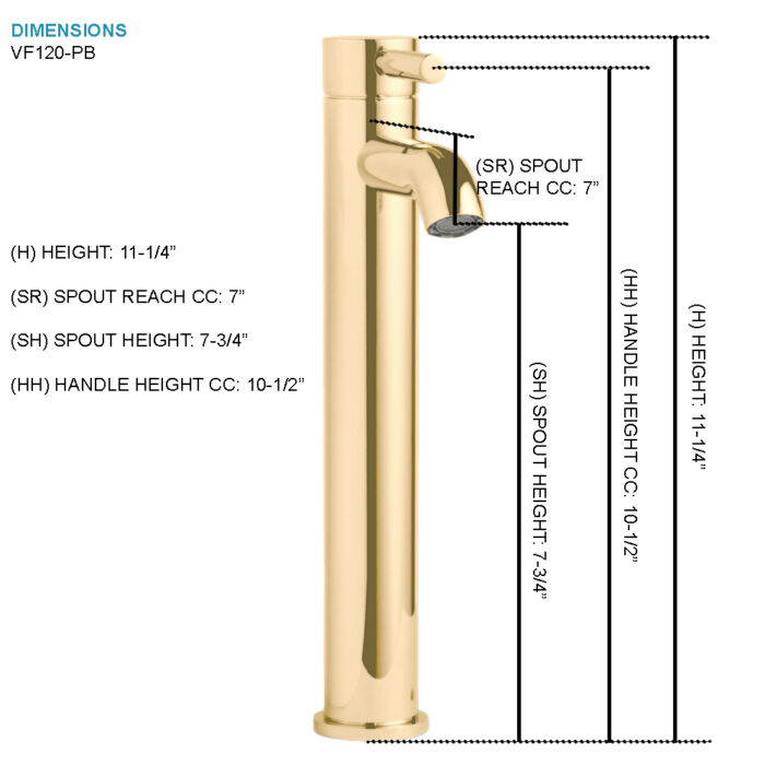 11-1/4″ H Polished Gold/Brass Single-Handle Vessel Bathroom Faucet with Pop-Up Drain Assembly | VF120-PB