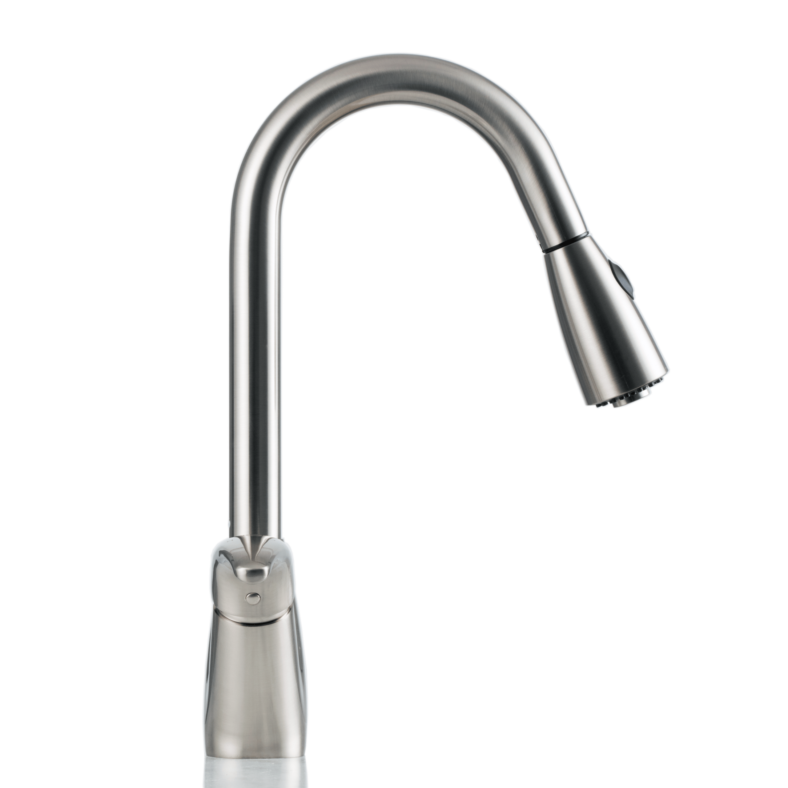 Elevate your kitchen aesthetics with our contemporary single-handle pull-down faucet, available in brushed nickel.