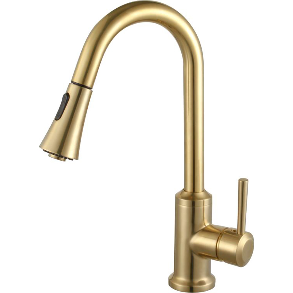 Elevate your kitchen aesthetics with our classic single-handle pull-down kitchen faucet, available in brushed nickel, brushed gold, and matte black.