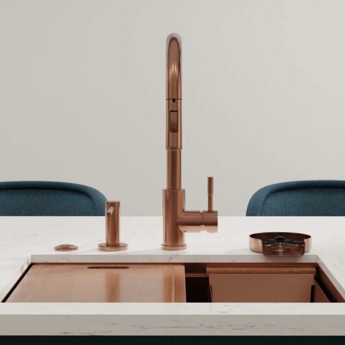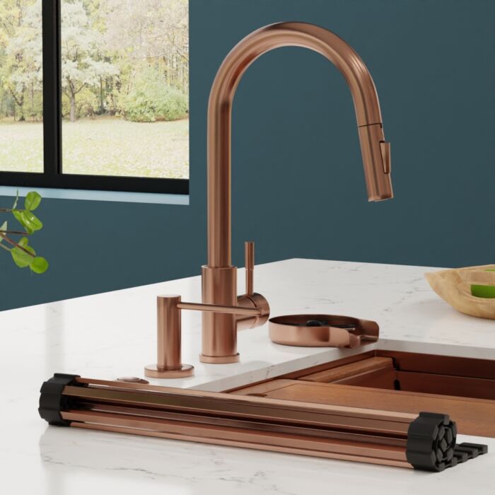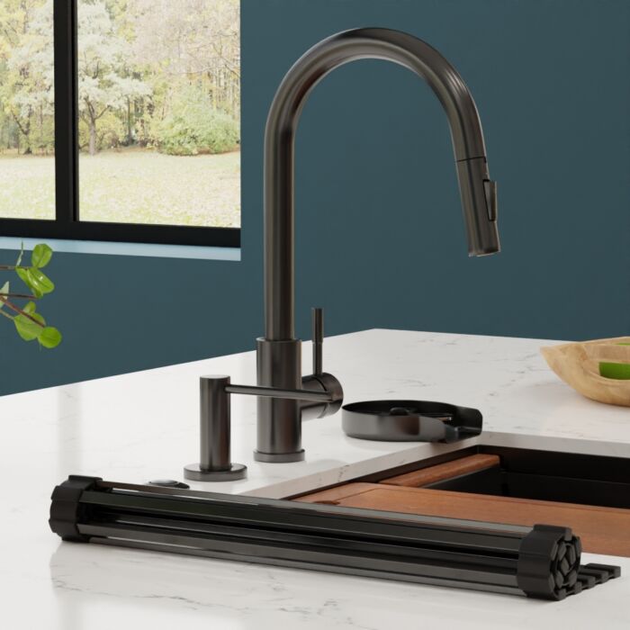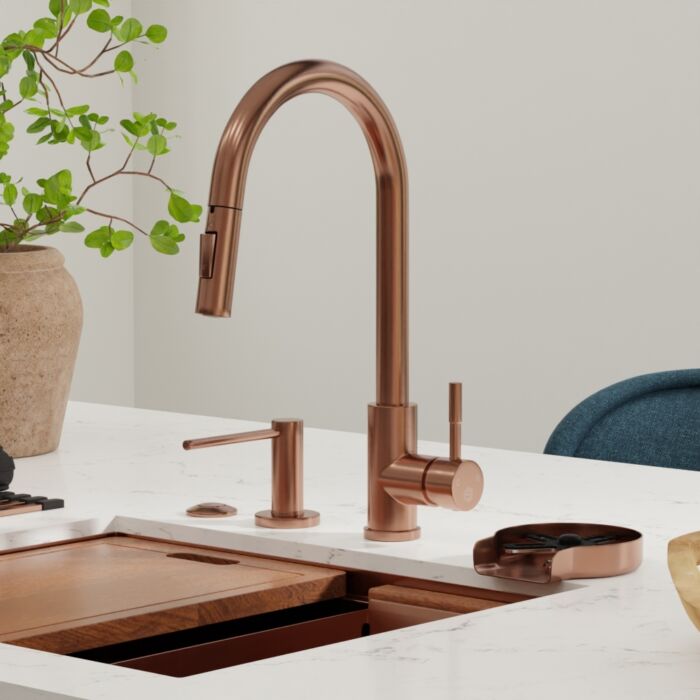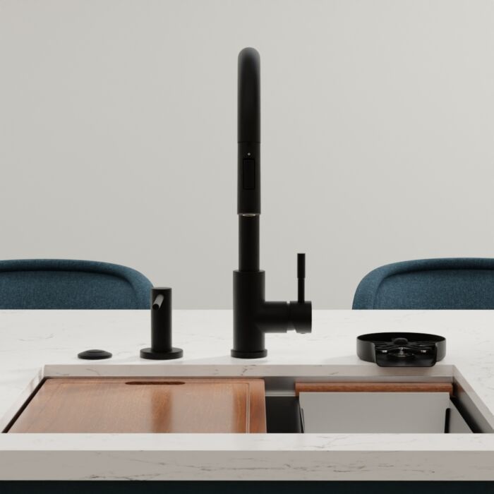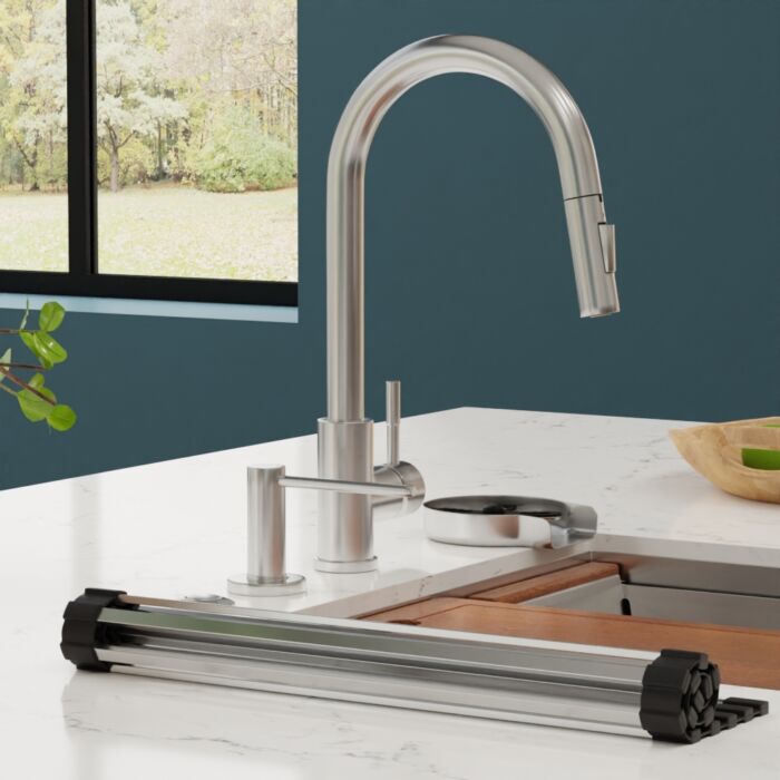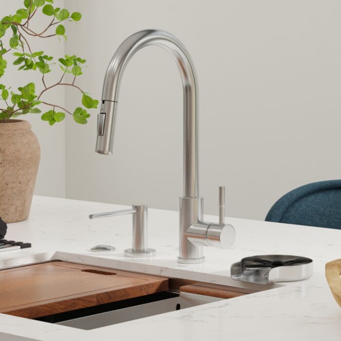 Elevate your kitchen, bar, or laundry aesthetics with our contemporary high-arch single-handle pull-down faucet, available in 5 stunning finishes.