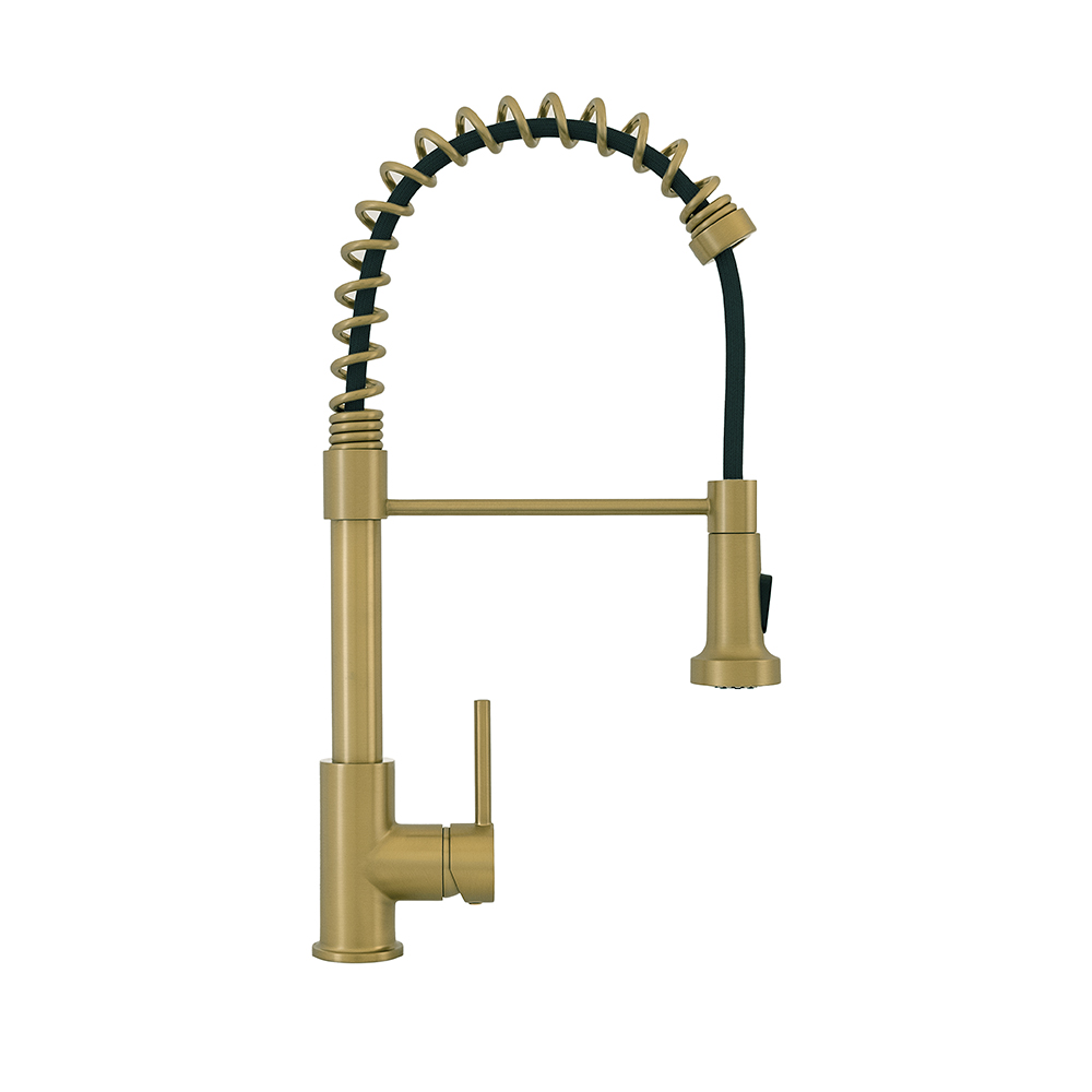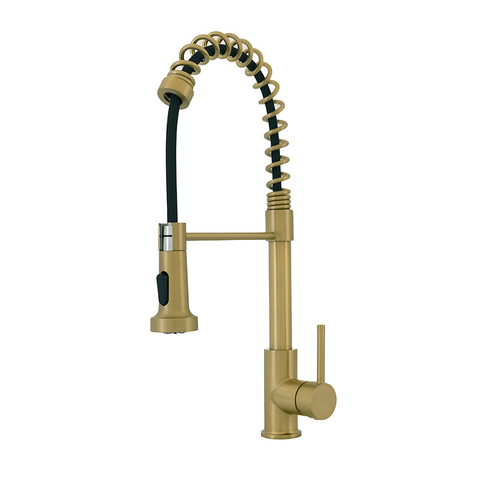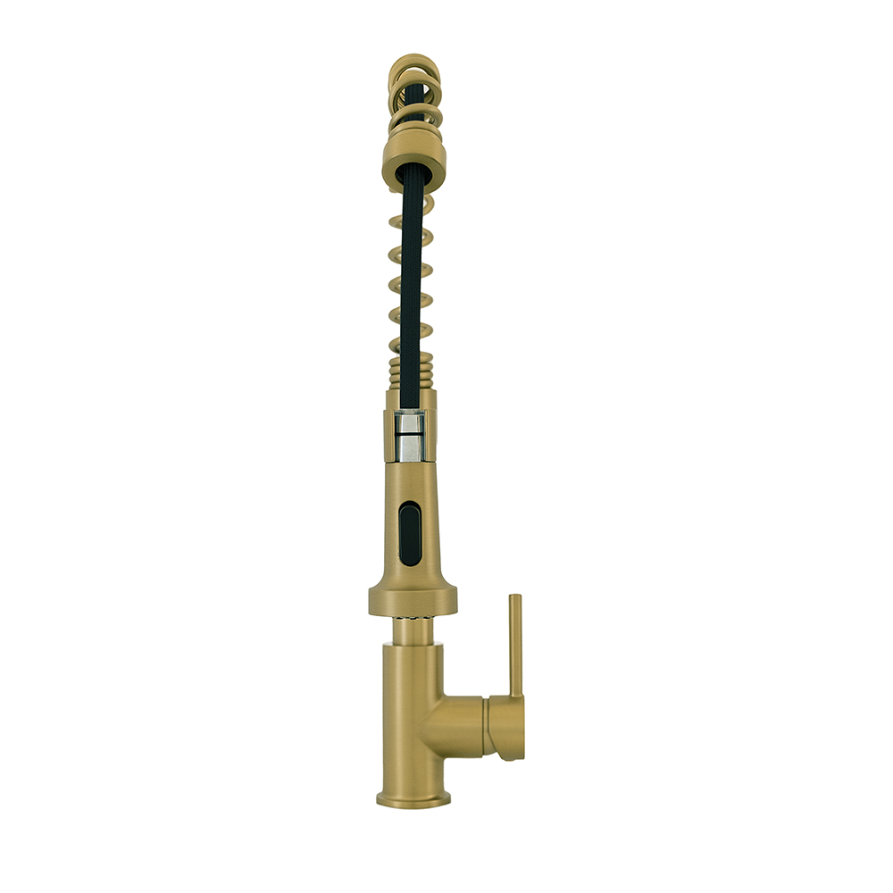 Elevate your kitchen aesthetics with our versatile coil spring single-handle pull-down kitchen faucet, available in the exquisite finishes of brushed nickel, brushed brass, brushed gold, brushed black, brushed copper, polished chrome, and matte black.