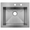 Built from durable 16-gauge stainless steel, this 25″ x 22″ x 12″ dual-mount laundry sink delivers deep capacity for heavy-duty tasks. Two faucet holes and an off-center drain enhance functionality while maximizing usable basin space.