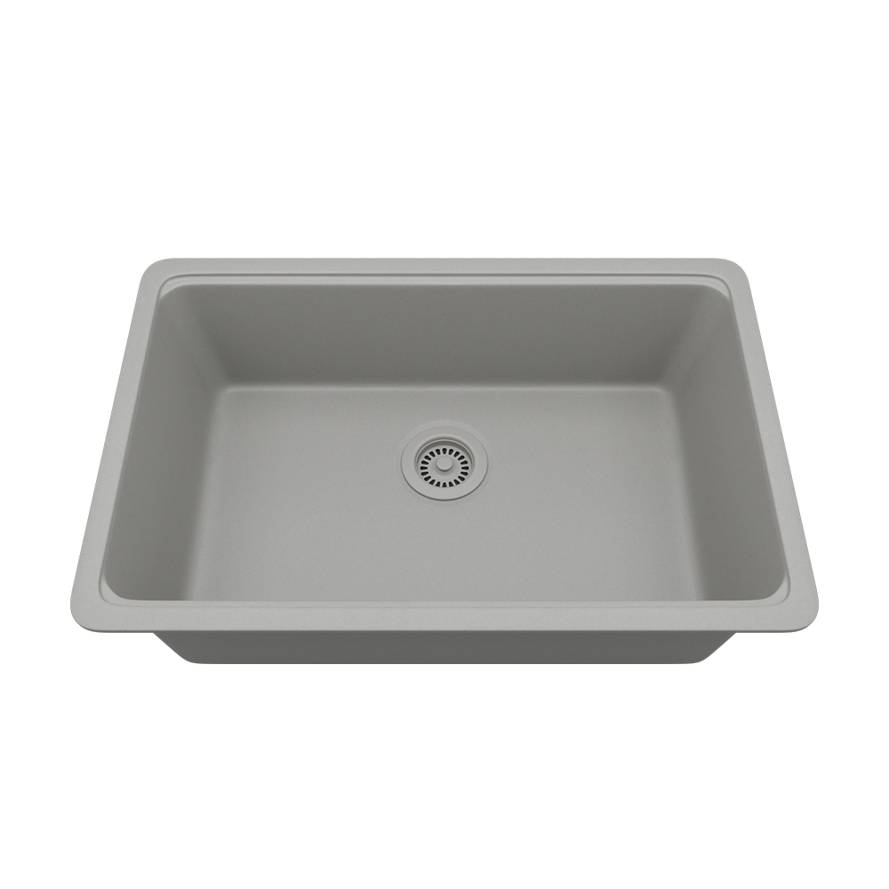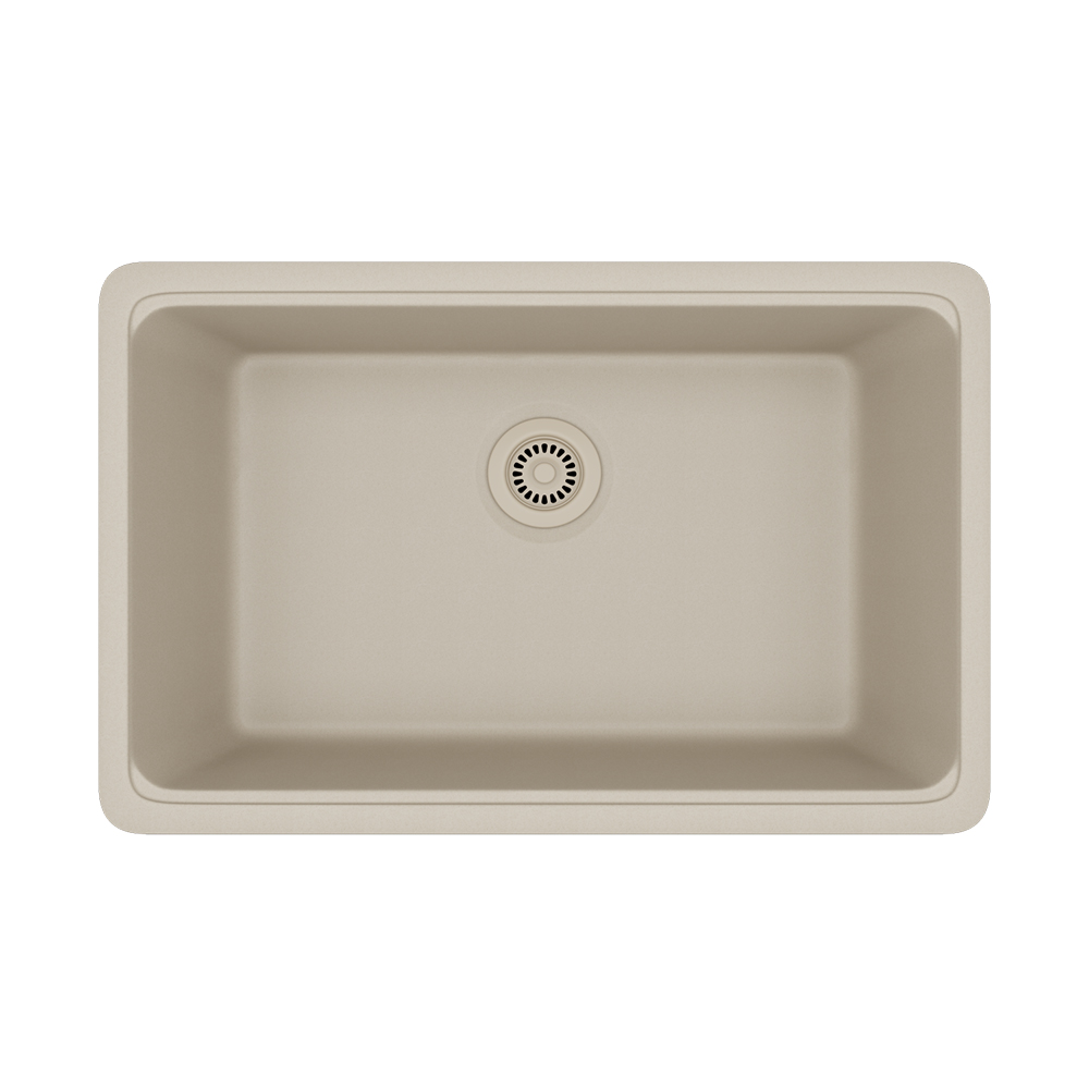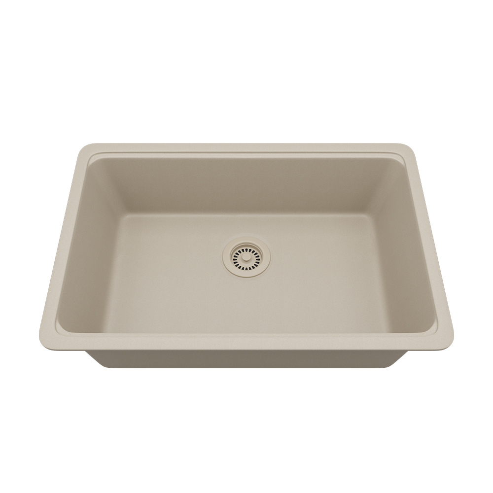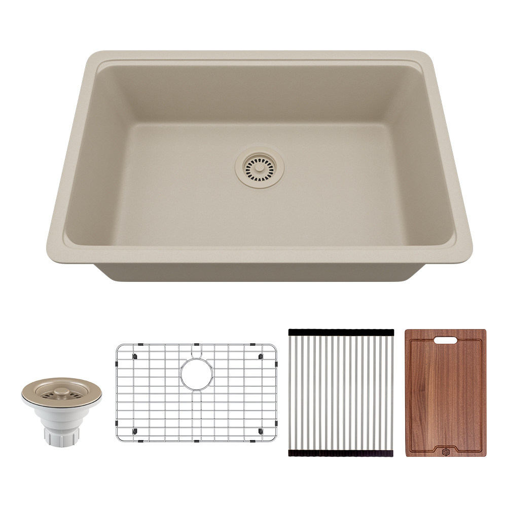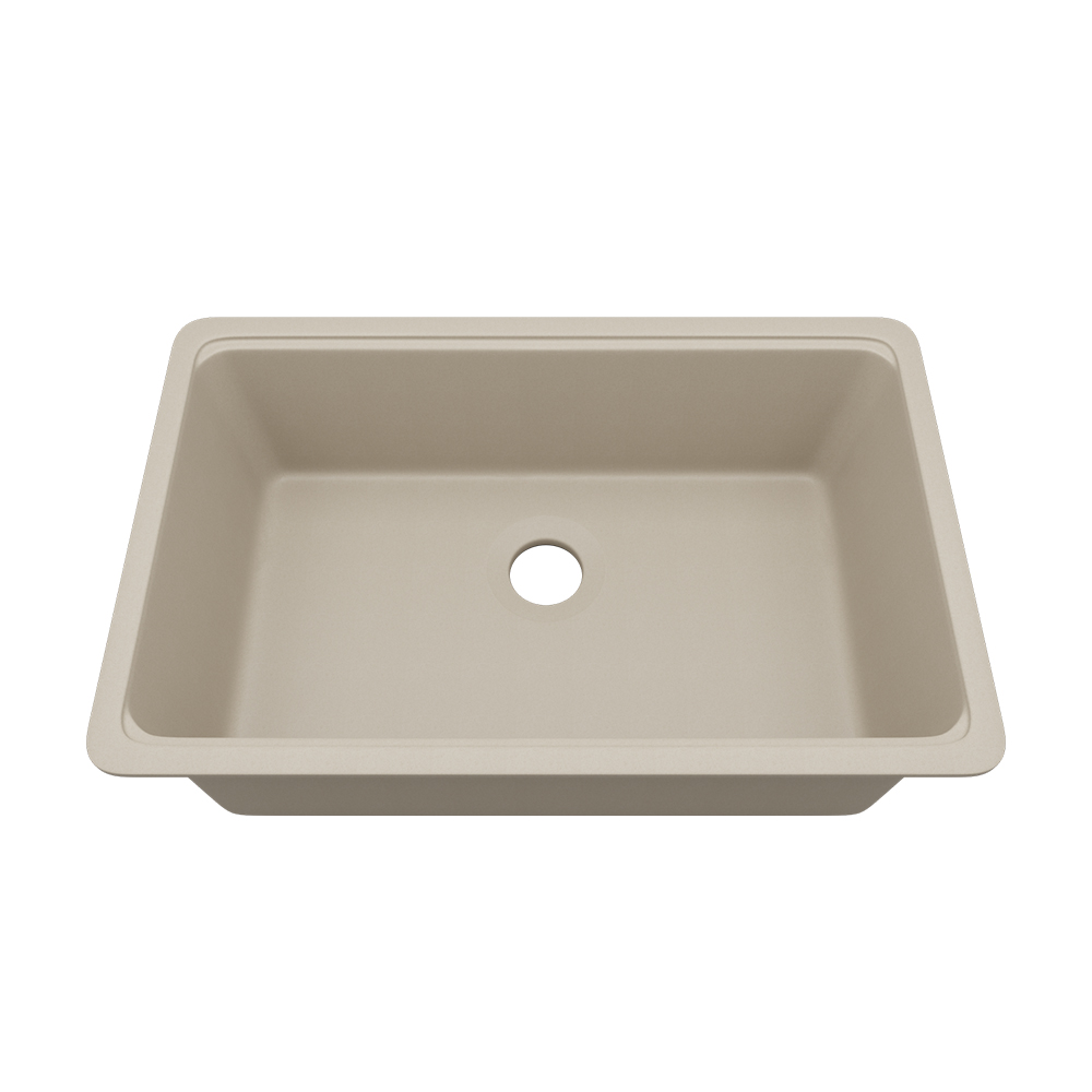 The Q28WS is a high-performance quartz composite sink designed to bring both style and durability to your kitchen. Measuring 29 ¾″ wide by 19″ front-to-back with a 10 ¼″ deep basin, it comfortably fits into any cabinet 30″ wide (33″ recommended) and offers an interior bowl size of 27 ¾″ × 17″ × 10 ¼″. Whether you prefer a top-mount or undermount installation, the Q28WS adapts seamlessly to your countertop. Available in five sophisticated hues—Beige, Black, Concrete, Mocha, and White—this sink complements a variety of kitchen palettes and décor schemes. A round, off-center drain provides efficient water flow, and optional accessories are just a click away.