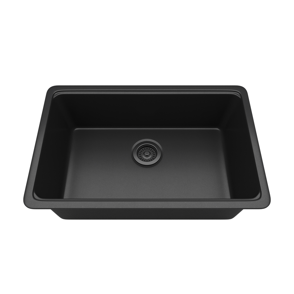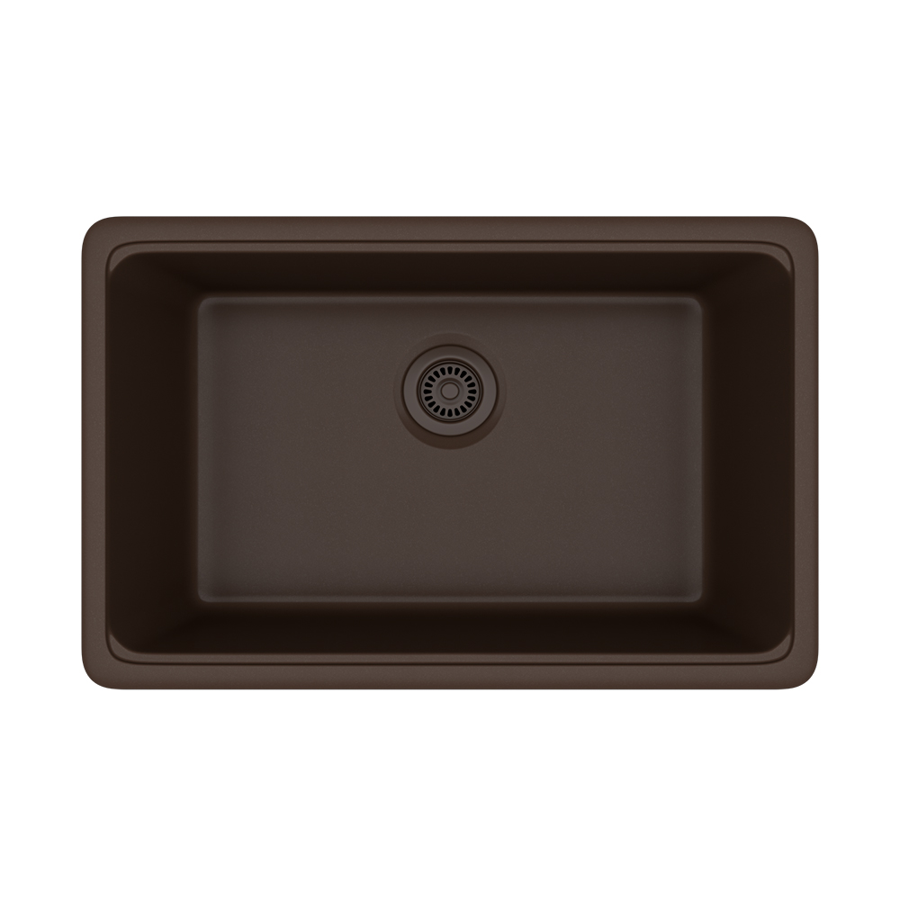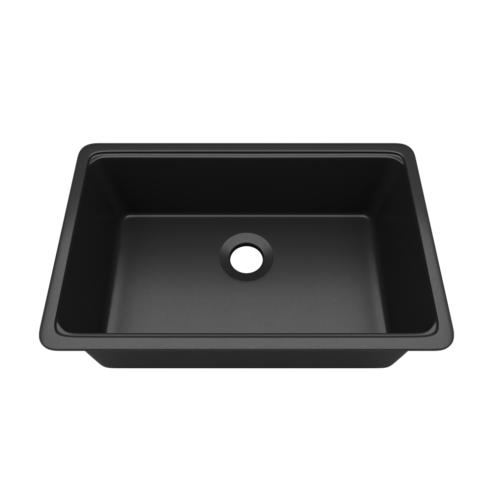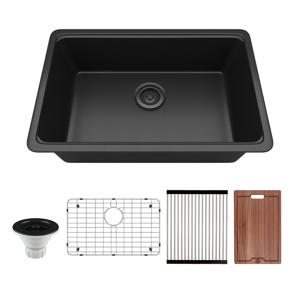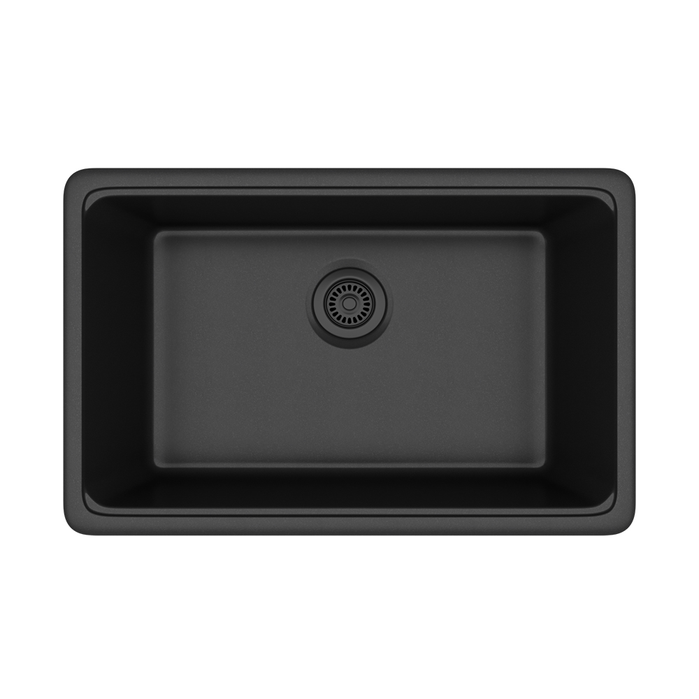 The Q28WS is a high-performance quartz composite sink designed to bring both style and durability to your kitchen. Measuring 29 ¾″ wide by 19″ front-to-back with a 10 ¼″ deep basin, it comfortably fits into any cabinet 30″ wide (33″ recommended) and offers an interior bowl size of 27 ¾″ × 17″ × 10 ¼″. Whether you prefer a top-mount or undermount installation, the Q28WS adapts seamlessly to your countertop. Available in five sophisticated hues—Beige, Black, Concrete, Mocha, and White—this sink complements a variety of kitchen palettes and décor schemes. A round, off-center drain provides efficient water flow, and optional accessories are just a click away.