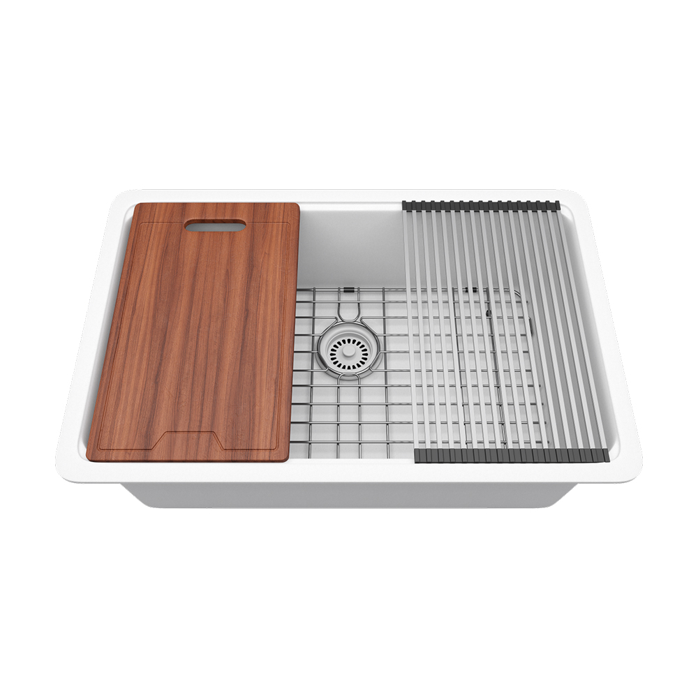 (NEW) 30" x 19" x 10" Dual-Mount Single Bowl Workstation Quartz Sink + Accessory Package - [Available in 5 Colors] - Q28WS - Best Quartz Sink with Off-Center Drain for Kitchens, Laundries and Bars