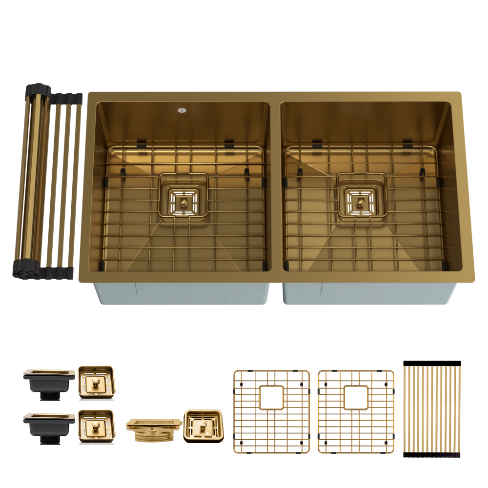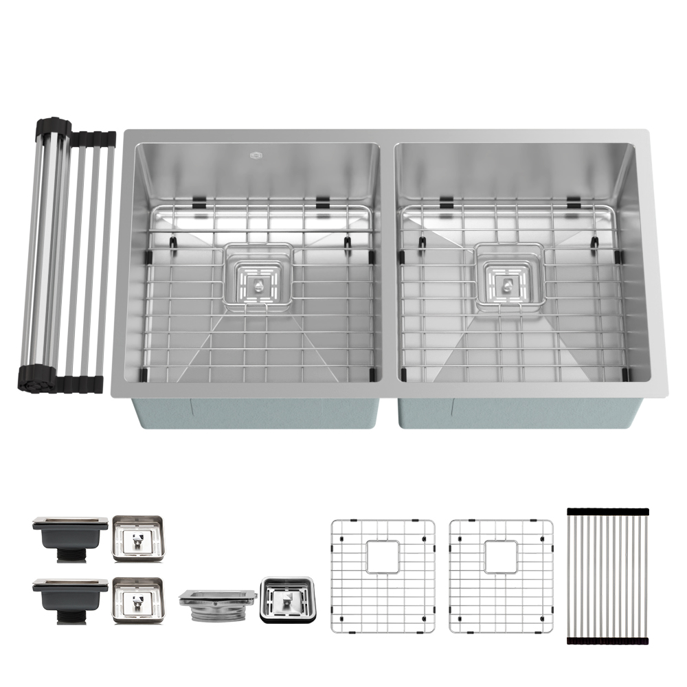 32-3/8″ x 18″ x 9″ Stainless Steel Undermount Double Bowl 16 Gauge 1/2″ Radius Kitchen Sink | R5050S