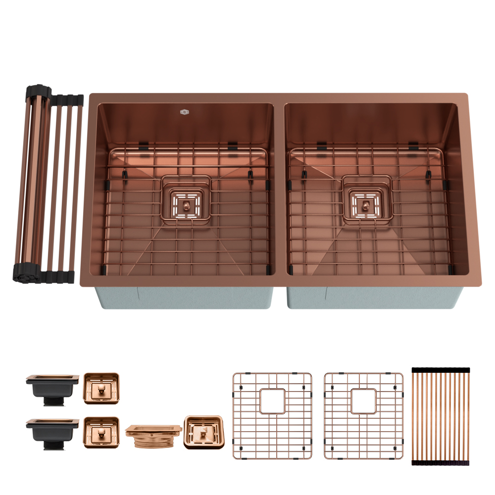 Designer Kit Includes: Sink + Square Basket Strainer Drain(s) + Square Disposal Flange + Sink Grid + Roll-Up Drying Rack + Mounting Hardware + Template
