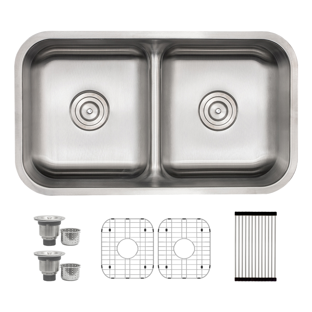 32-5/16″ x 18-1/2″ x 9″ Stainless Steel Undermount Low-Divide Double Bowl Kitchen Sink – (D5050LD)