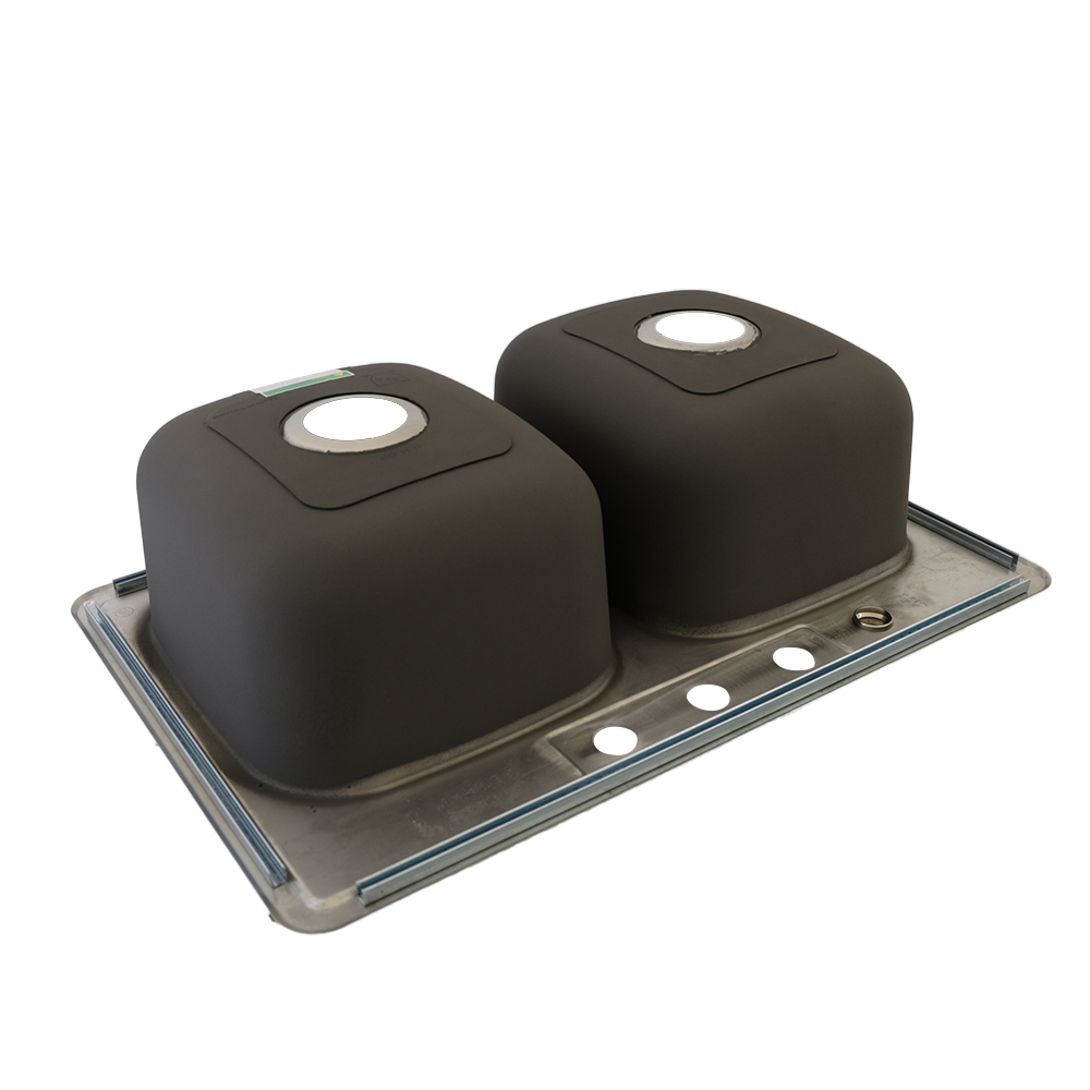 Designed to fit seamlessly into an 36″ cabinet, or custom fit into a 33″ cabinet. It offers a generous double bowl layout with an off-center drain for efficient flow and easy cleanup between basins.