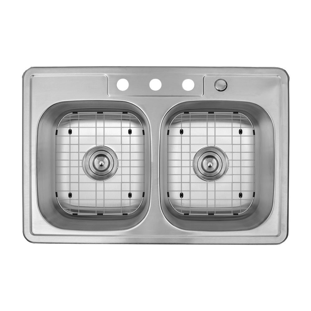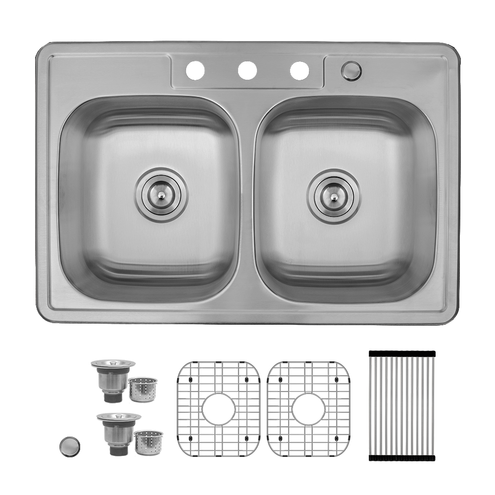 3 reviews for 33″ x 22″ x 9” Stainless Steel Drop-in Double Bowl Kitchen Sink with Center Drains – (TMD5050)