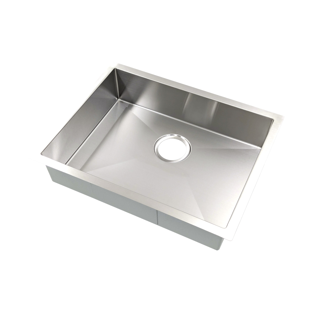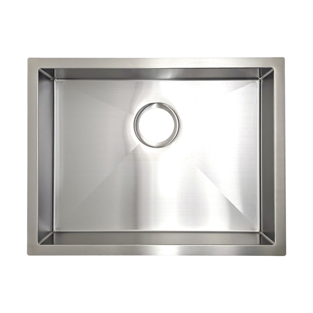 Modern 16 gauge stainless steel single bowl ADA compliant kitchen sink with easy clean corners.