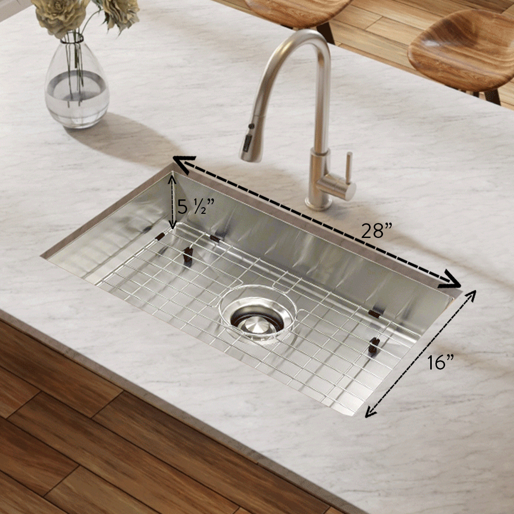 Designed for both functionality and accessibility, this ADA-compliant kitchen sink is 30″ x 18″ x 5-1/2″ and is an ideal solution for kitchens and laundry rooms alike. Constructed from premium T304 stainless steel and available in 16-gauge, it offers lasting durability and resistance to rust, corrosion, and daily wear.