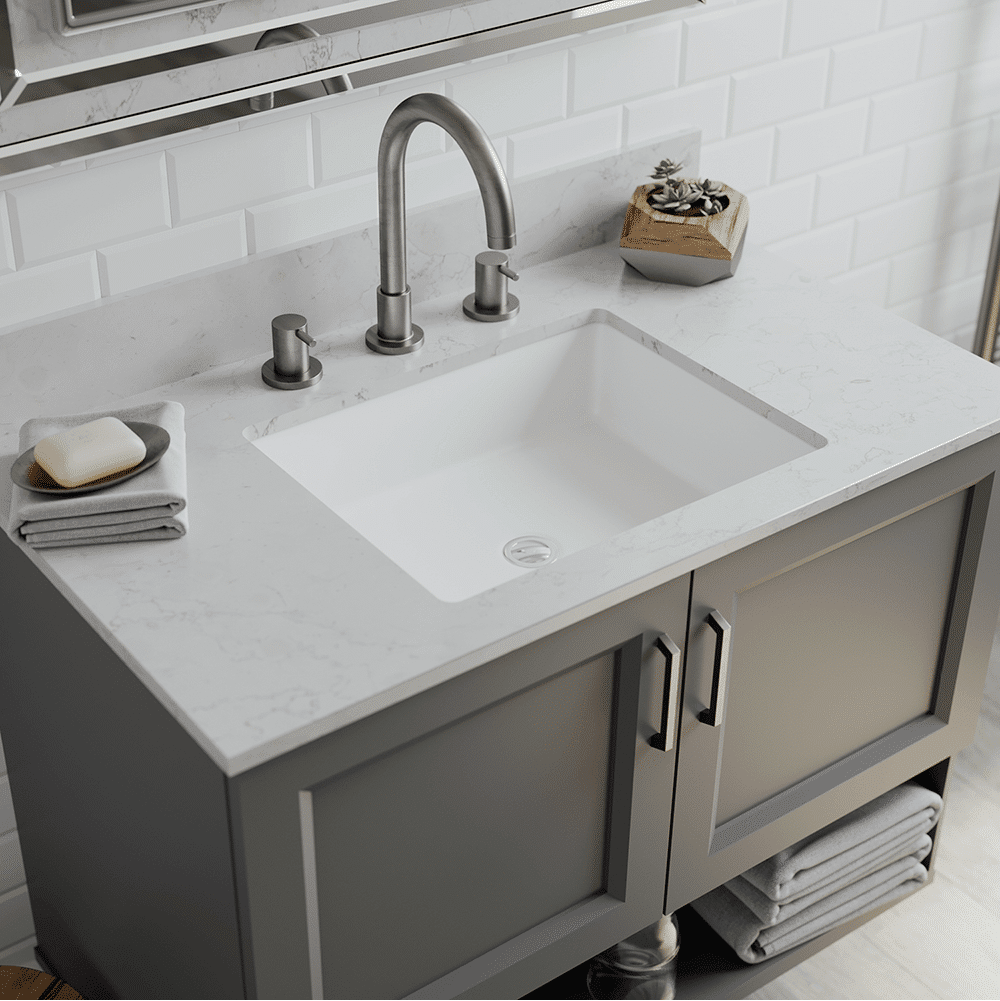 19-7/8″ x 15-3/4″ x 5″ Dual-Mount Rectangular Trench Quartz Bathroom Sink with Center Drain – (Q1915L)