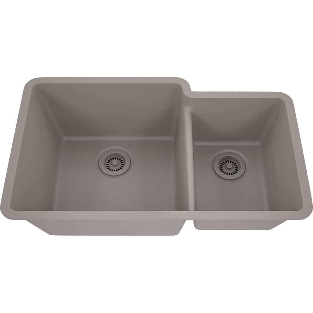 So, you’ve decided on a Double Bowl Quartz Composite Sink? Love it! Every Quartz Sink is crafted from a high quality blend of 80% granite/quartz composite and 20% acrylic material which offers superior surface protection from scratching and staining. The smooth surface is easy to clean, withstands high temperatures, and offers antibacterial defense which as a result, keeps your family safe from germs.