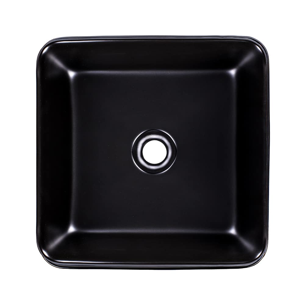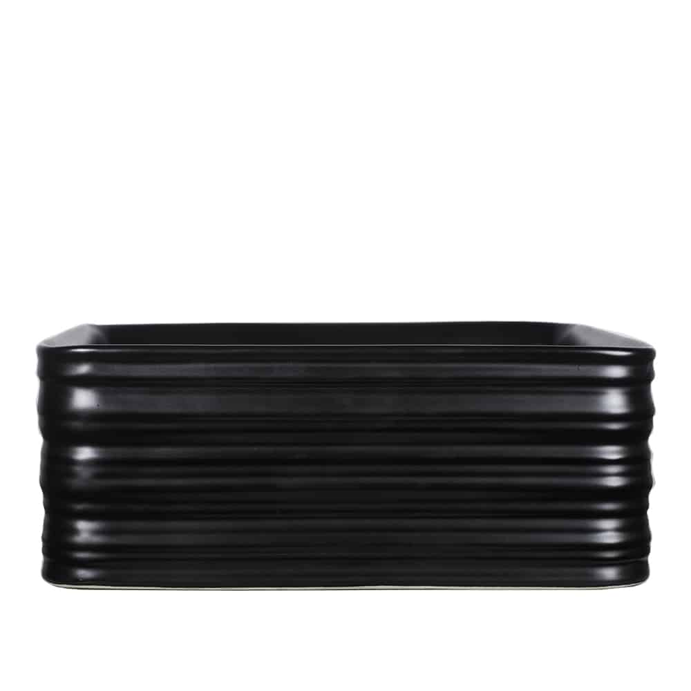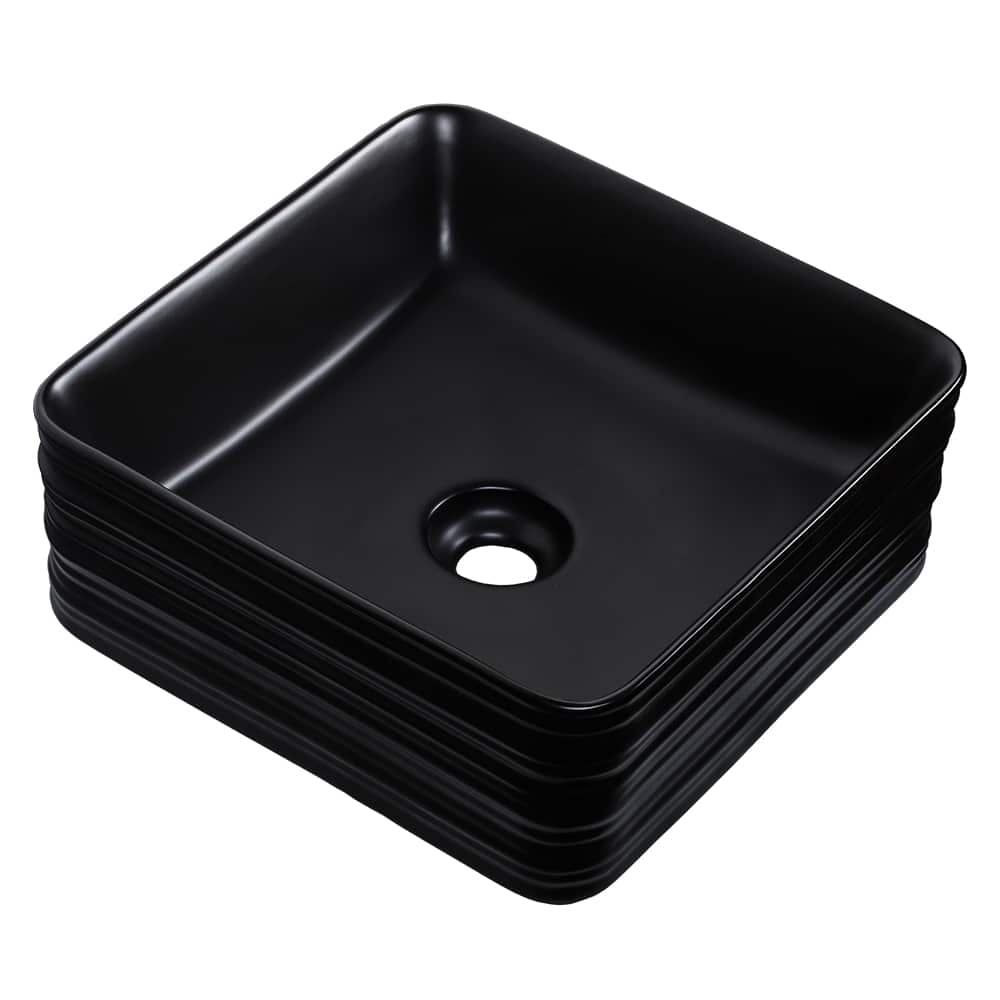 15-3/4″ x 15-3/4″ Matte Black Square Porcelain Luxury Vessel Sink with Grooved Exterior