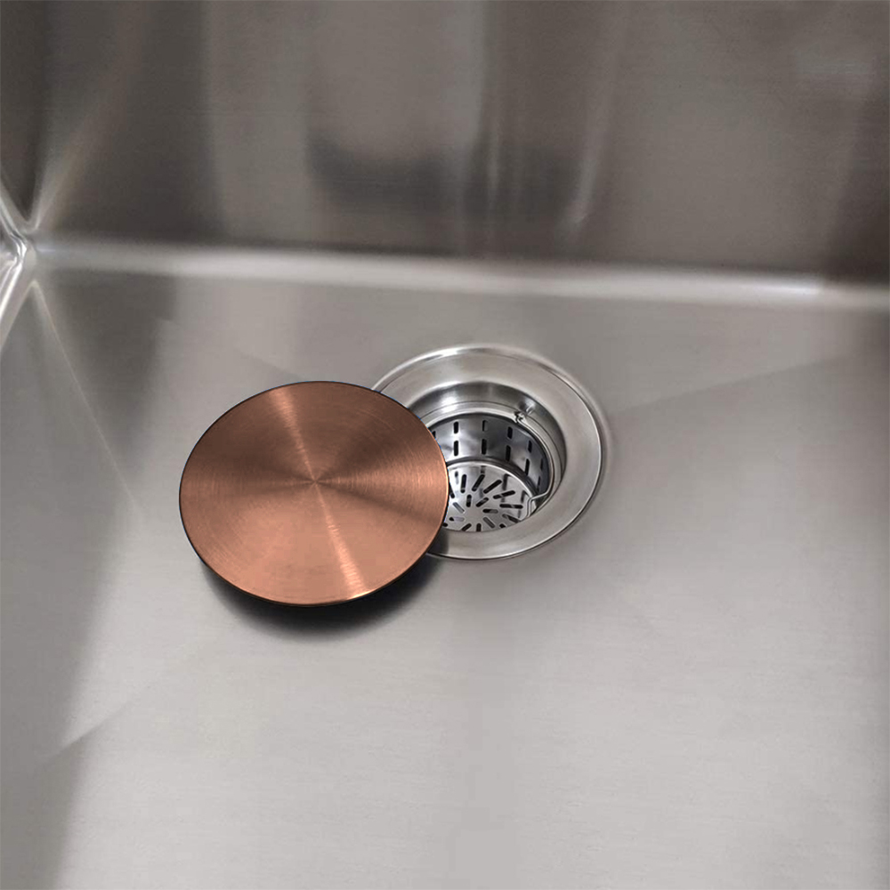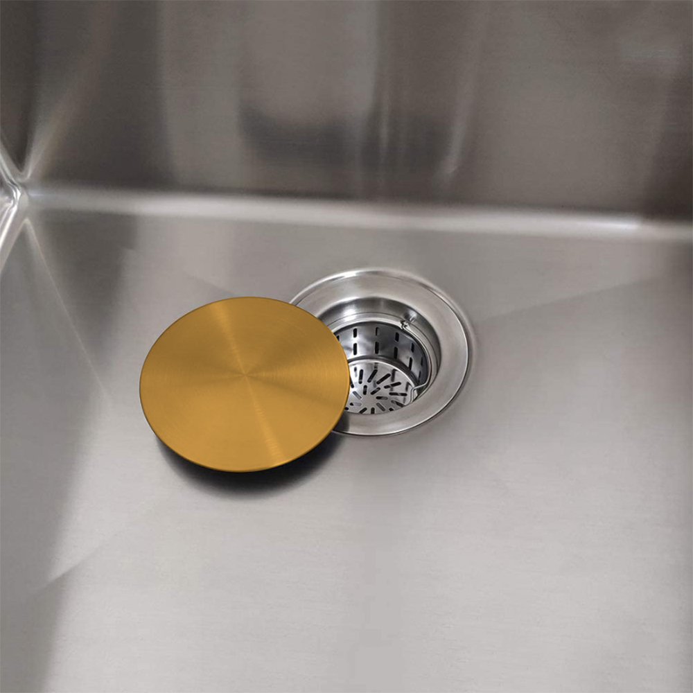 Elevate your sink’s look with our sleek, modern drain cover—designed for a seamless finish over your drain opening. Measuring 4.5″ x 4.5″ x 9/16″, this decorative cover is not a plug or stopper, but a stylish solution that allows water to flow freely while helping to block larger food debris. Crafted from durable stainless steel and available in four brushed finishes—Stainless Steel, Gold, Black, and Copper—it’s the perfect blend of function and modern design.