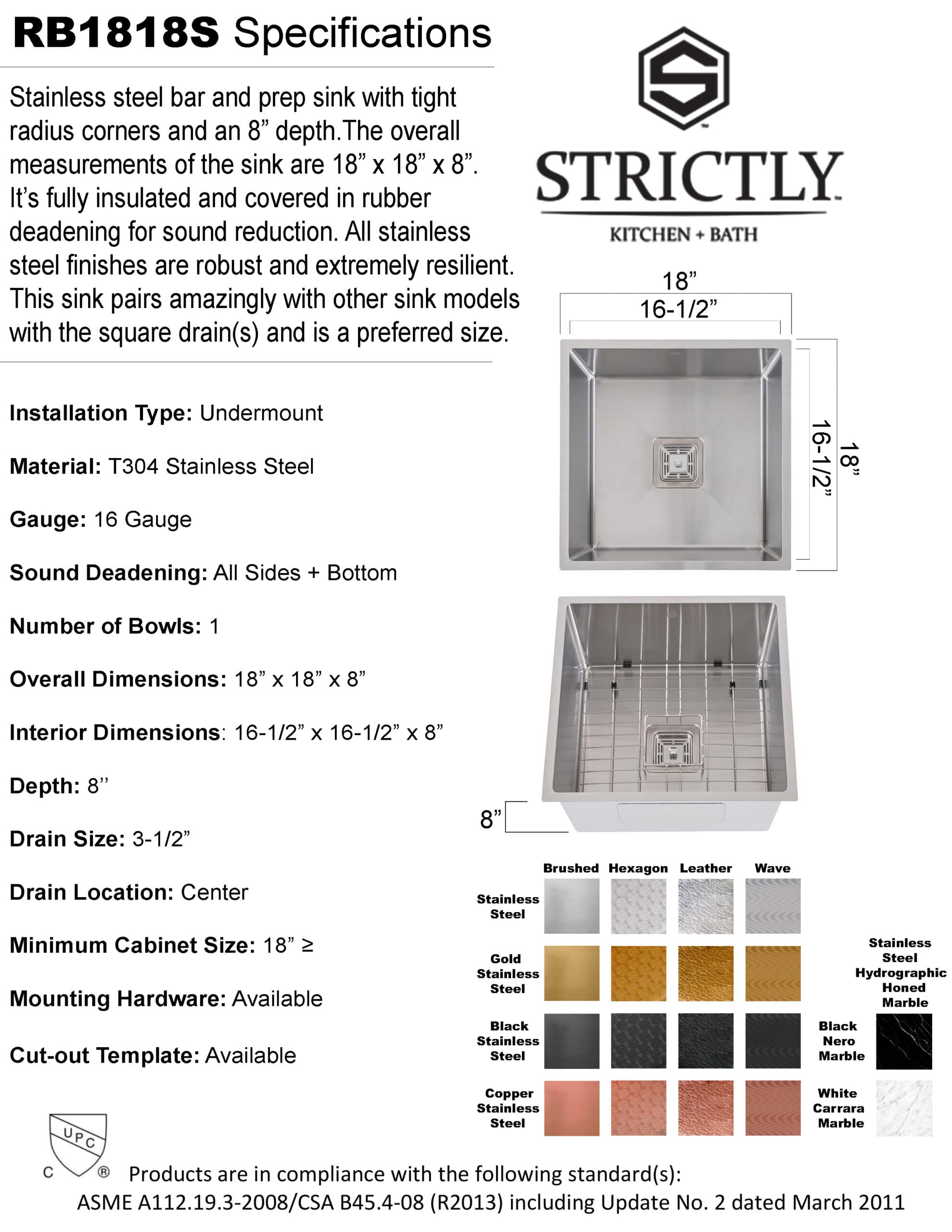 Pairs amazingly with other square drain sink models: N100WS & N5050WS
