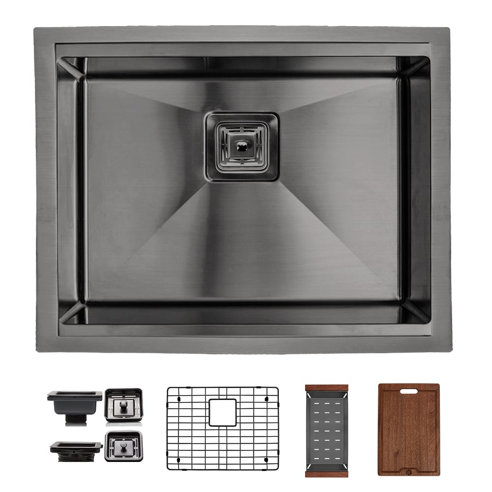 Introducing the epitome of kitchen functionality and elegance – the 23″ x 19-1/2″ x 9″ Stainless Steel Single Bowl 16 Gauge Workstation Sink, available in a stunning array of finishes to suit your design preferences. Crafted from premium 16-gauge stainless steel, this sink not only exudes durability but also adds a touch of sophistication to any kitchen setting.