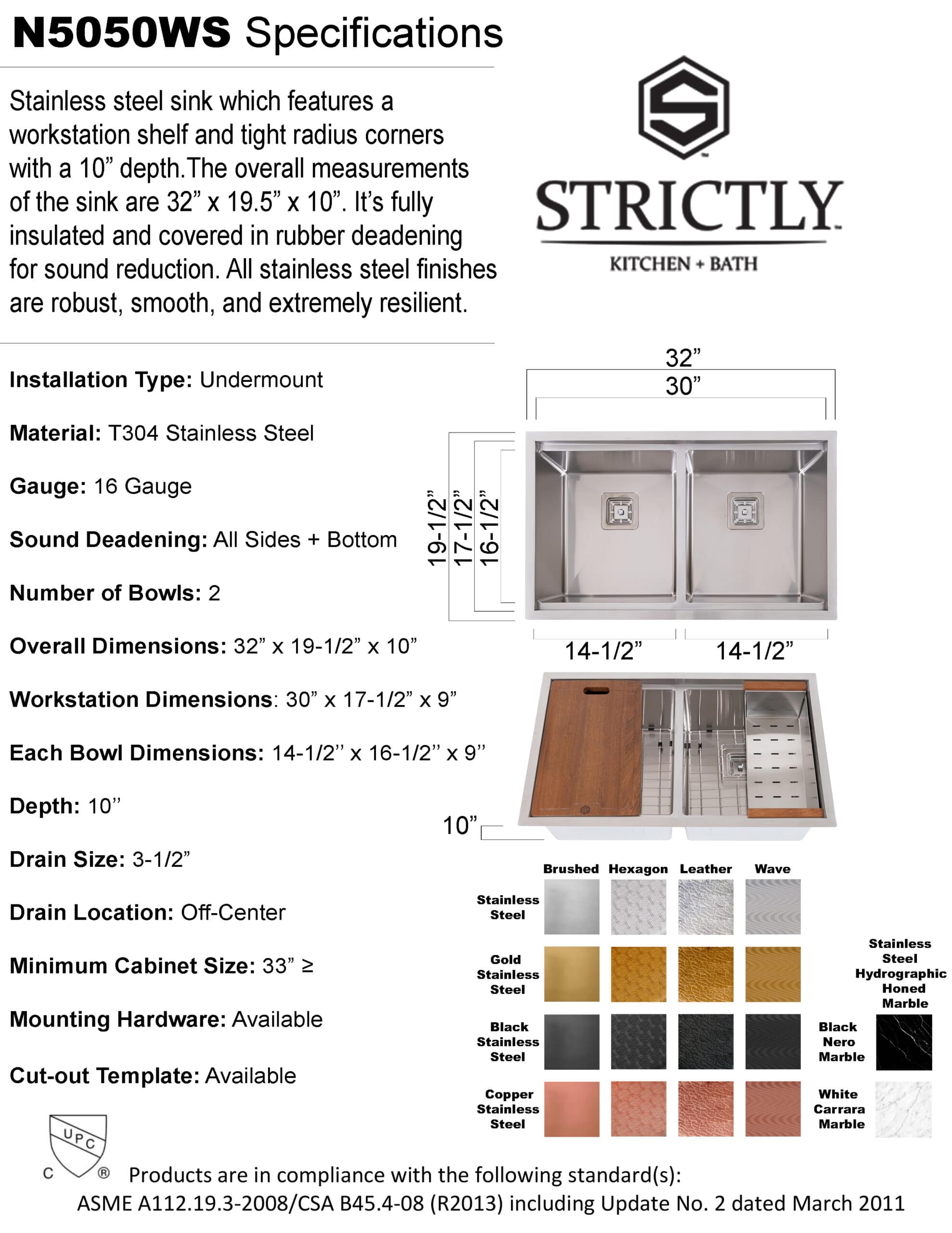 (NEW) 32" x 19-1/2" x 10" Stainless Steel Undermount Double Bowl 16 Gauge Workstation Sink | N5050WS