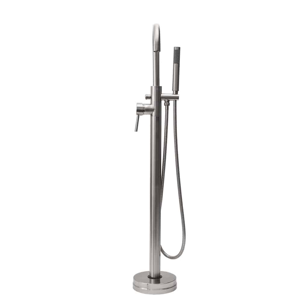 Timeless Floor Mounted Tub Filler with Hand Shower and Hose - Rough-in Valve Included TF200-BN - BRUSHED NICKEL Timeless Floor Mounted Tub Filler with Hand Shower and Hose - Rough-in Valve Included TF200-BN - BRUSHED NICKEL