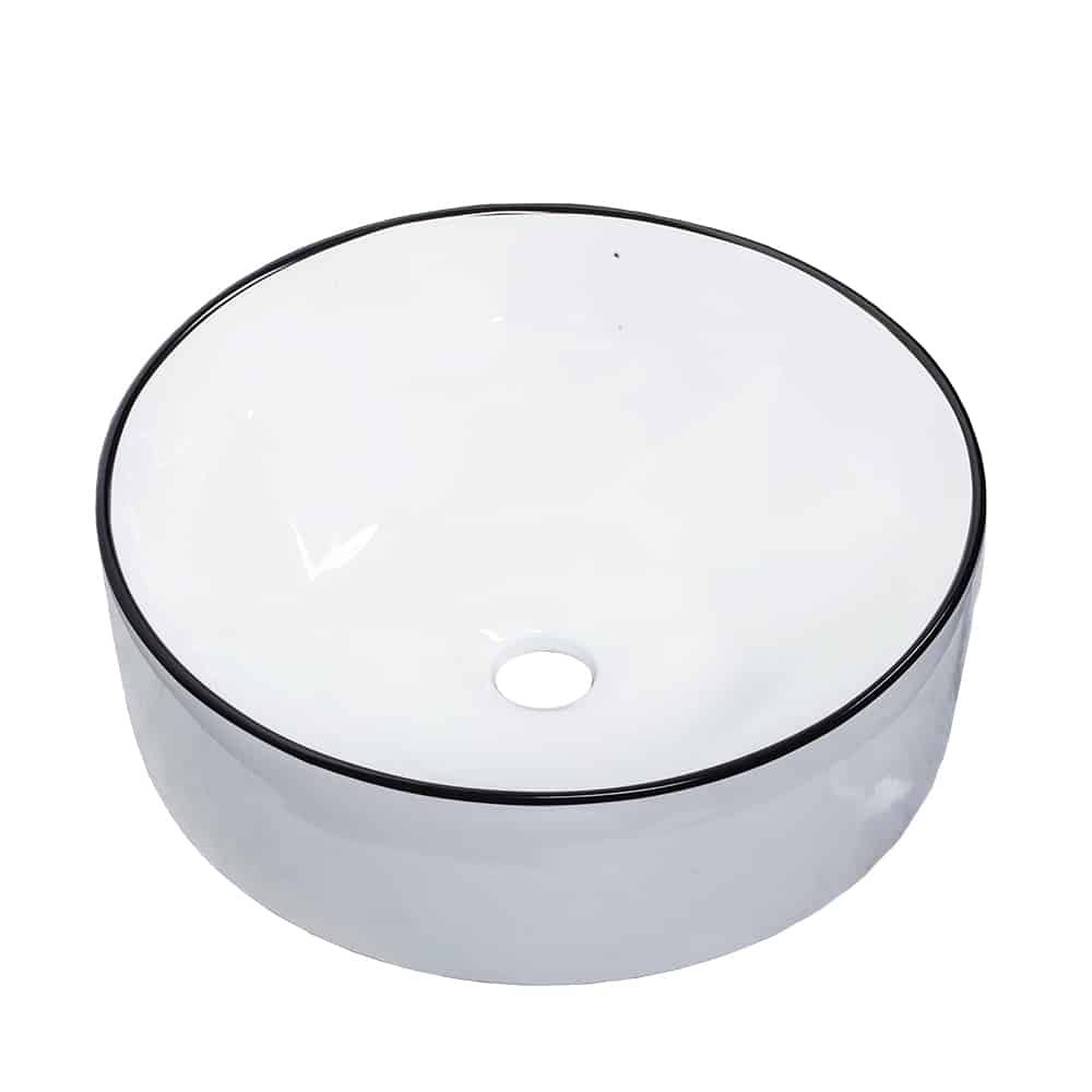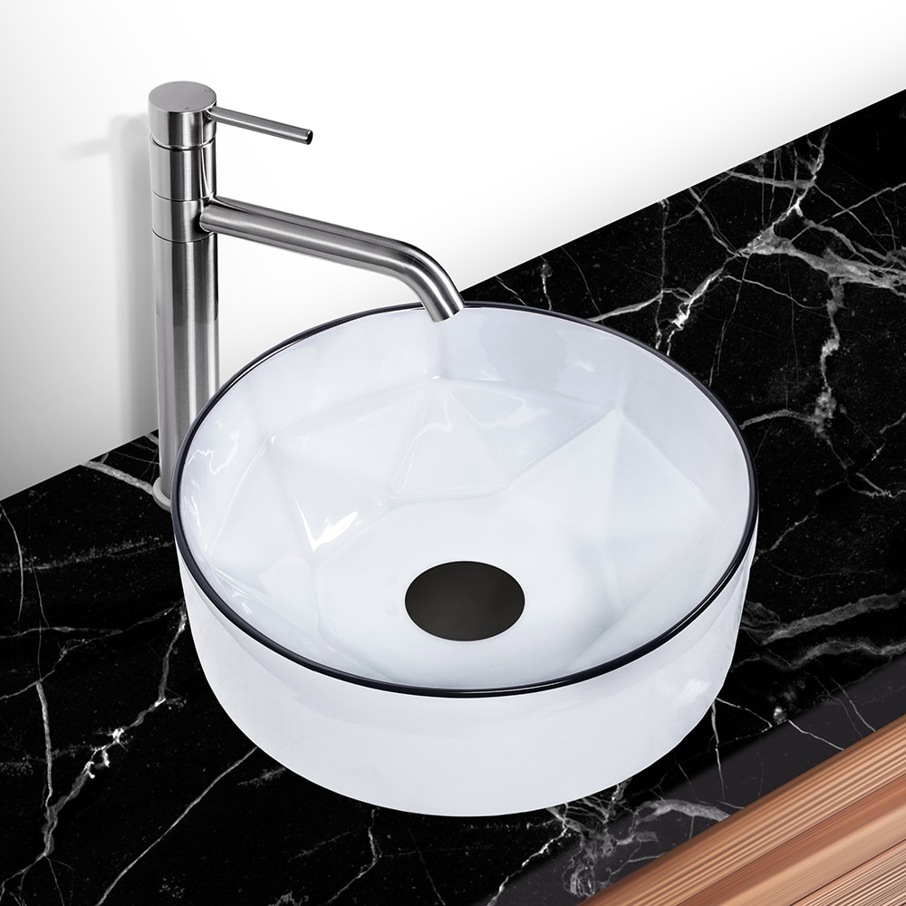 16” x 16″ Round Princess Cut with Black Trim Porcelain Luxury Vessel Sink.