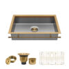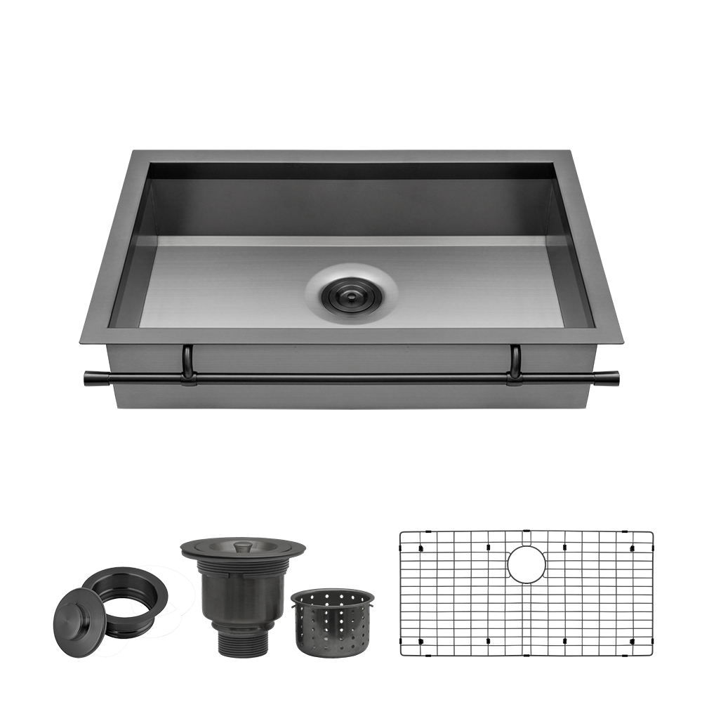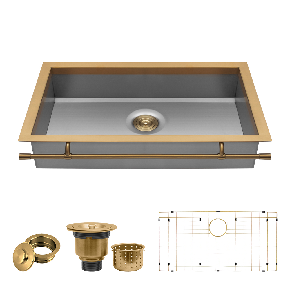 (New) Stainless Steel and Brushed Gold or Black Semi-Recessed Apron-Front Kitchen Sink with Towel Bar (Available in *18"/*25"/33"/36"/*42" x 21" x 8") - TBSA