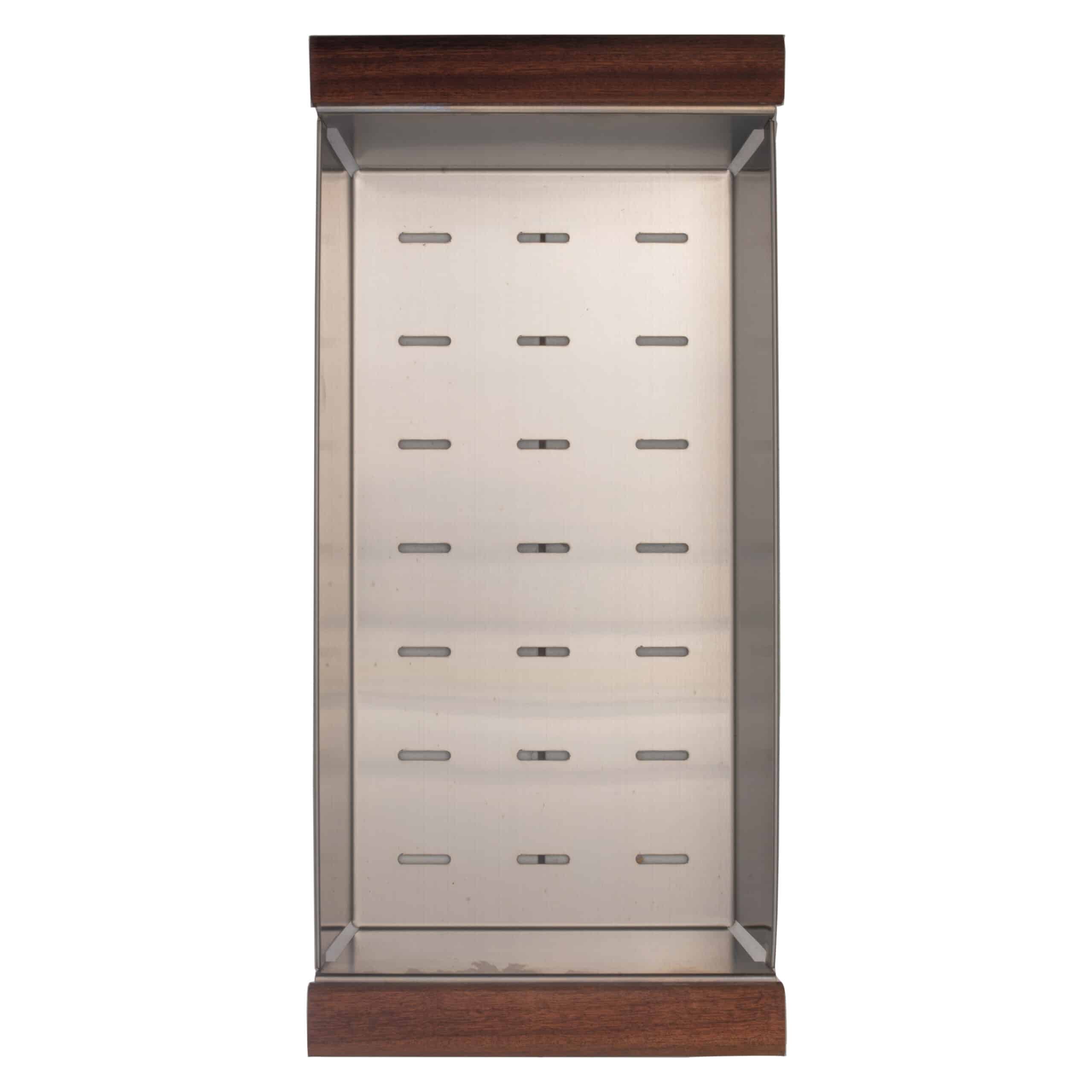 20″ x 8-1/8″ x 4-3/4″ Stainless Steel Colander is Designed to fit over the countertop of our 30″ RCOR3030 Corner Sink or with any sink opening greater than 16″ width front to back.