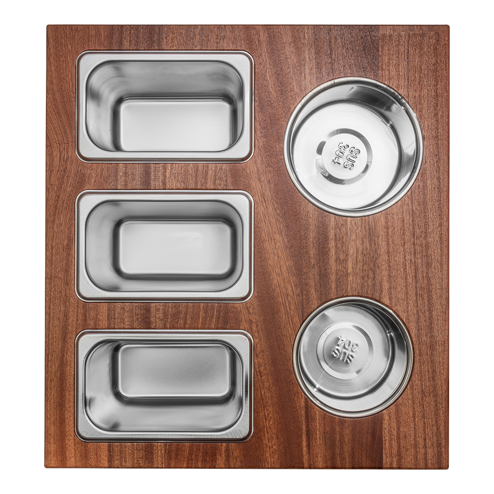 15-5/8" Wood Condiment Board with Stainless Steel Bins for Hosting & Prep - COND-FULL