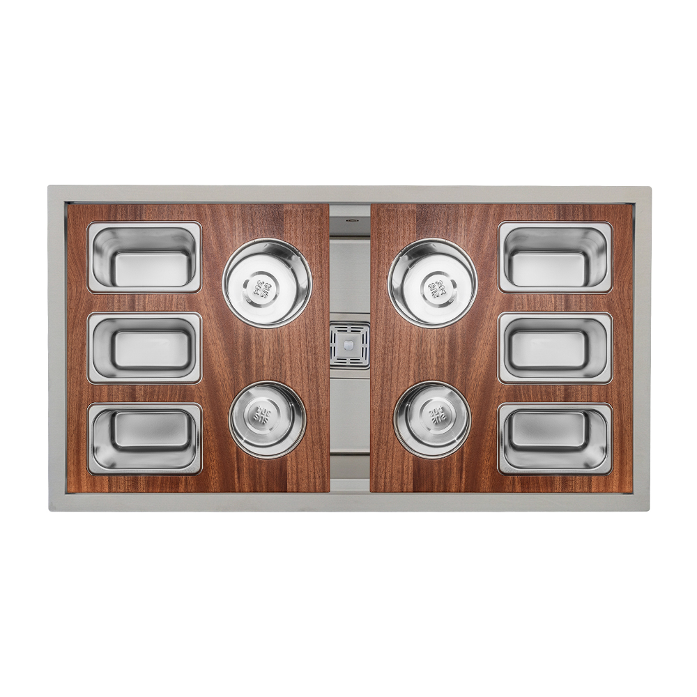 Can be chilled from underneath with double bowl sink compartment filled with ice.